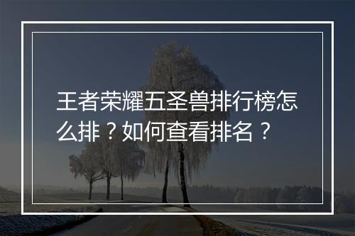 王者荣耀五圣兽排行榜怎么排?如何查看排名? 王者荣耀作为一款备受欢迎的手机游戏,拥有众多玩家。在游戏中,五圣兽作为重要的角色,其排名一直是玩家们关注的焦点。那么,王者荣耀五圣兽排行榜是如何排的呢?如何查看排名呢?本文将为您详细解答。 一、王者荣耀五圣兽排行榜...